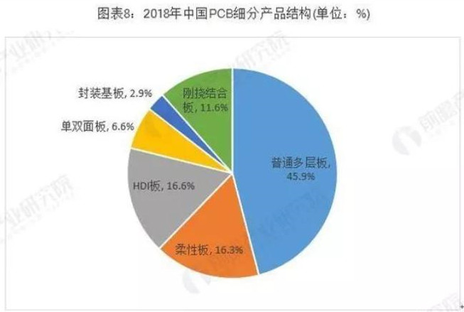 根據(jù)Prismark的統(tǒng)計(jì),2018年全球PCB細(xì)分產(chǎn)品的市場(chǎng)結(jié)構(gòu)如下: